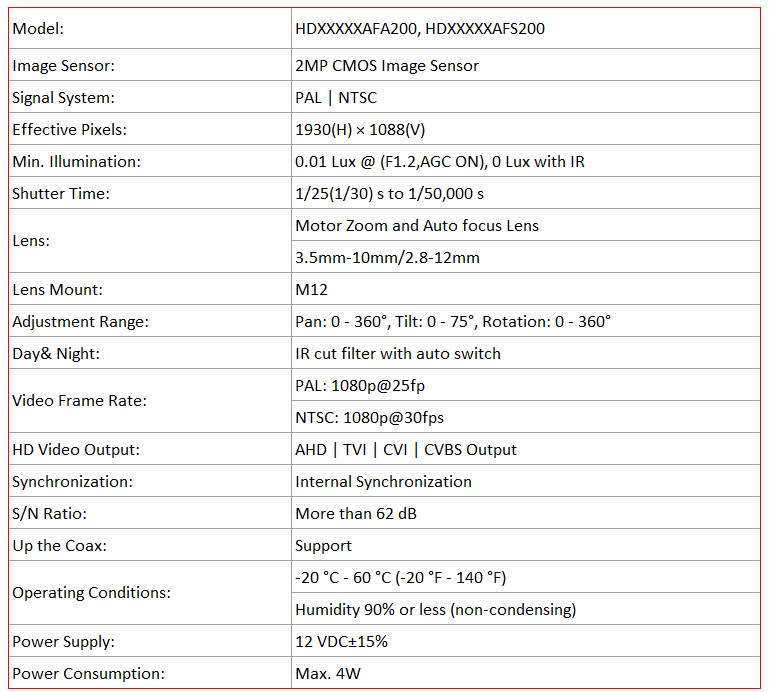 | HD Motor Zoom and Auto Focus Cameras Specification | Download |