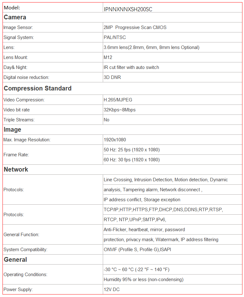 ▪ 3.6mm lens (2.8mm/6mm/8mm) is optional